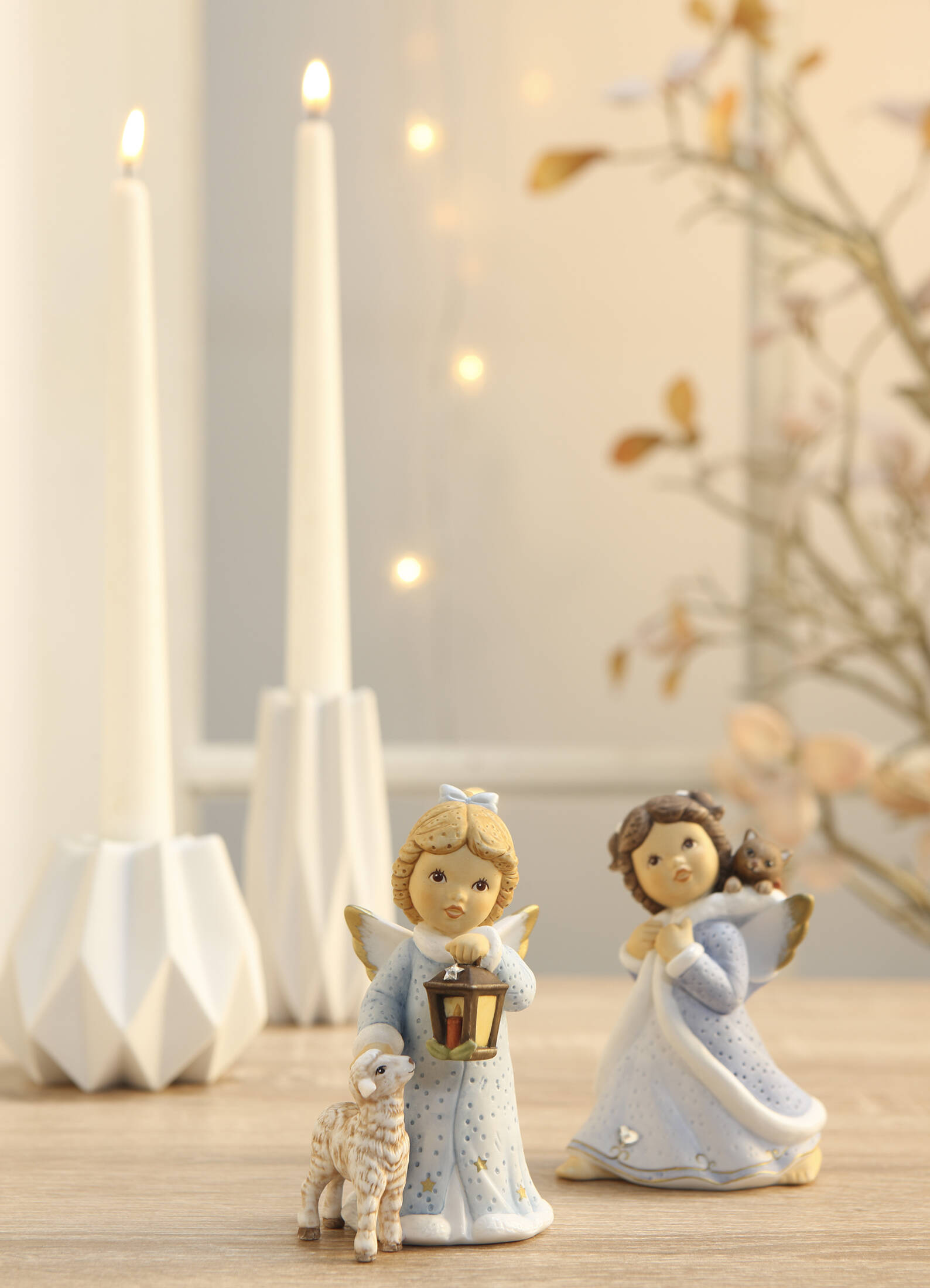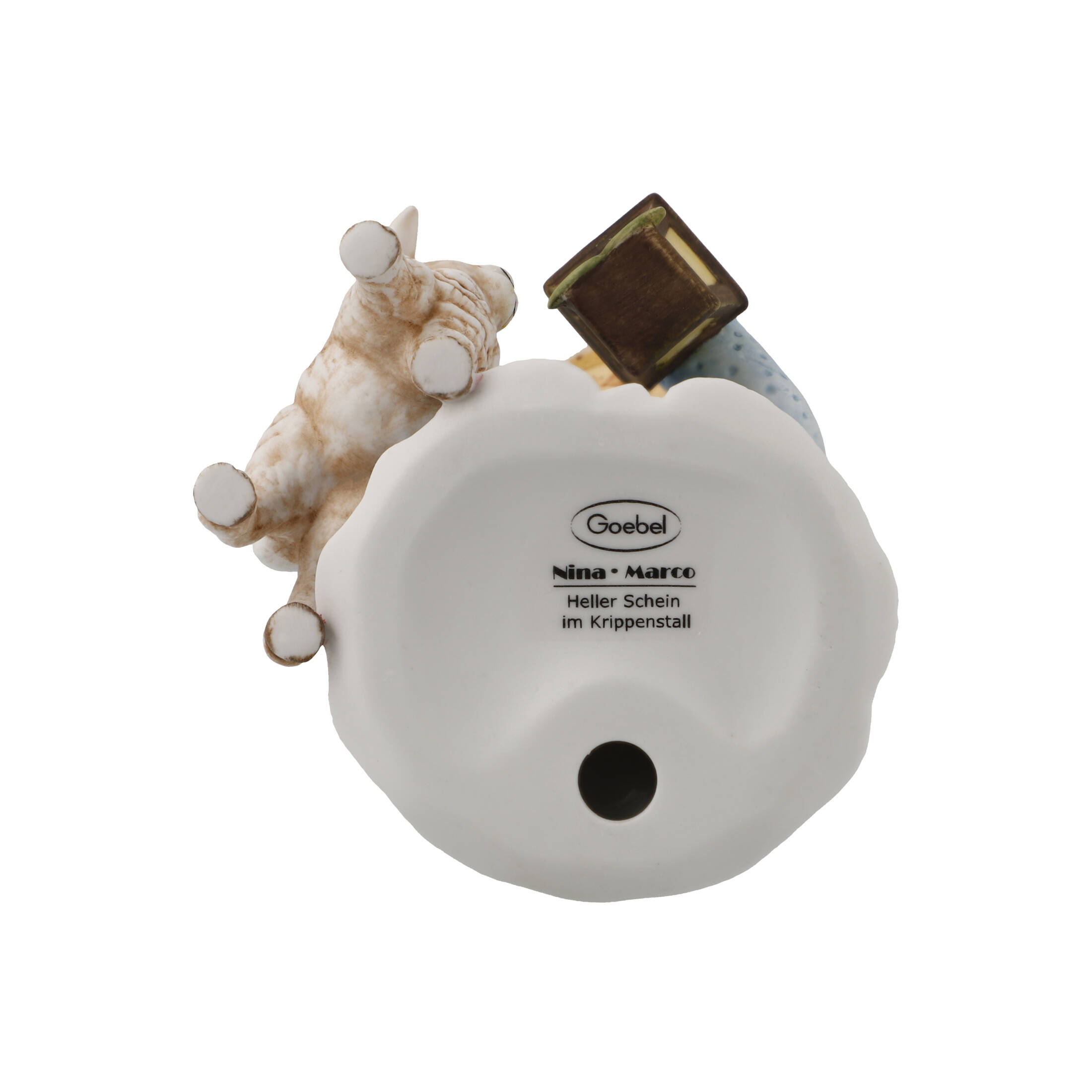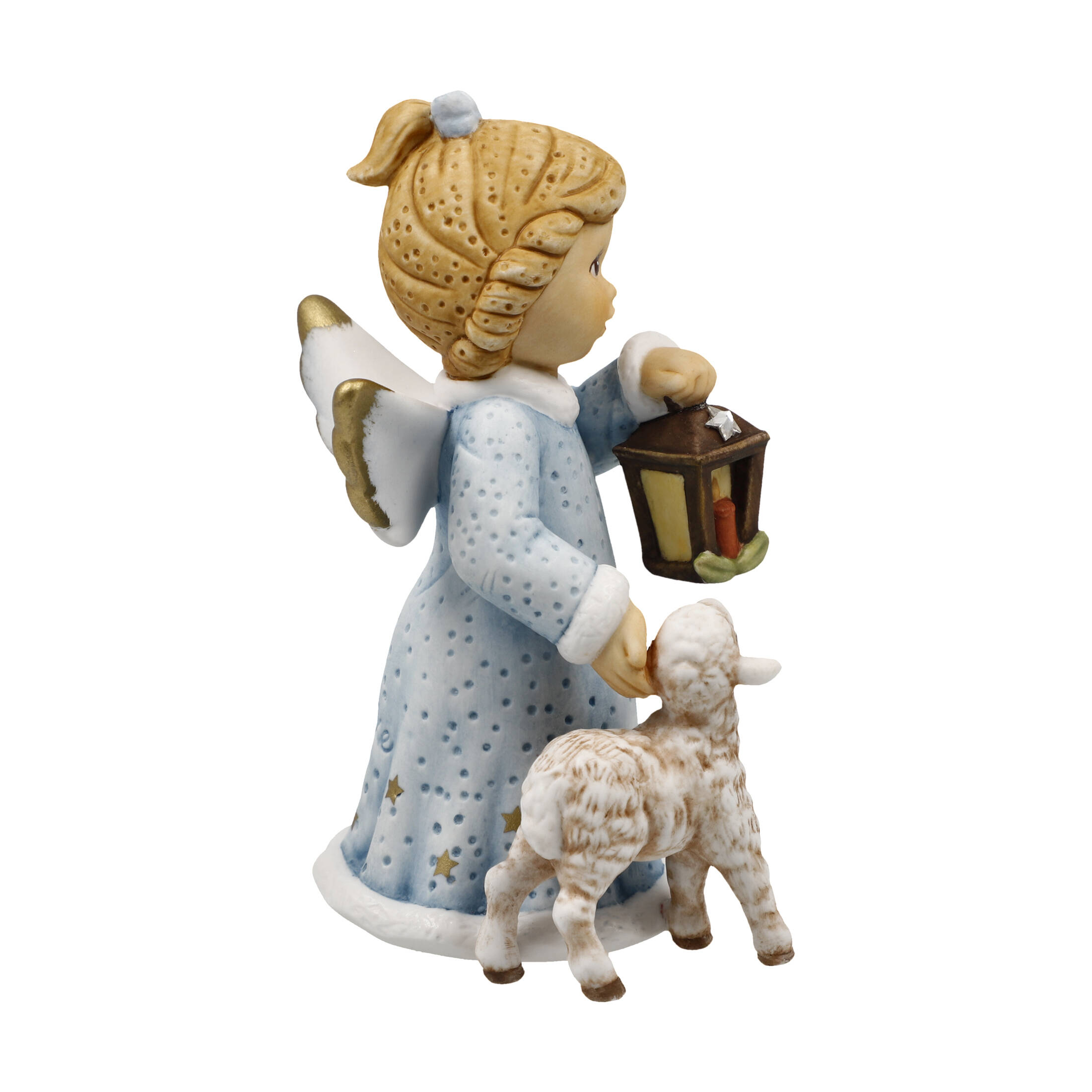Le petit ange gardien est en visite dans l'étable de la crèche. Il souhaite un joyeux Noël à tous les animaux et est directement accueilli avec curiosité par le plus petit des agneaux. Une pierre de cristal en forme d'étoile est placée sur la lanterne.