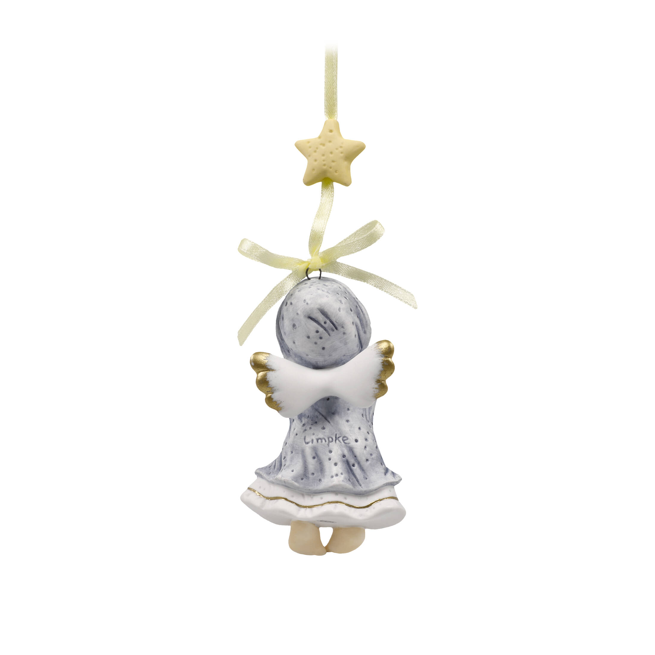 En tant qu'ornement à suspendre, le petit ange gardien devient une décoration très spéciale pour votre intérieur. Il flotte ainsi à la fenêtre ou sur le sapin de Noël et enchante par son caractère adorable. Curieux, il compte les étoiles dans le ciel.